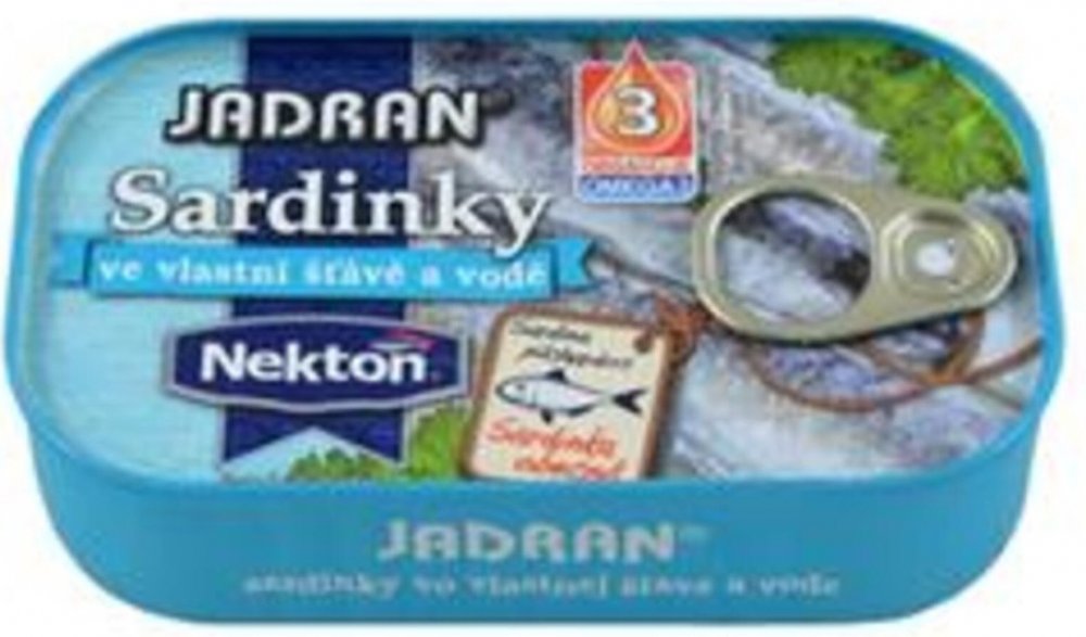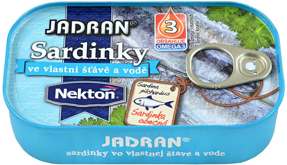 Jadran Sardinky ve vlastní šťávě a vodě 125 g. Složení: (sardinka obecná - Sardina pilchardus), pitná voda 27 %, jedlá sůl 1 % Skladujte a uchovávejte při teplotě +2°C až +28°C. Po otevření uchovávejte při teplotě do +6°C a spotřebujte do 24 hodin. Odlov v moři. Země původu: Maroko