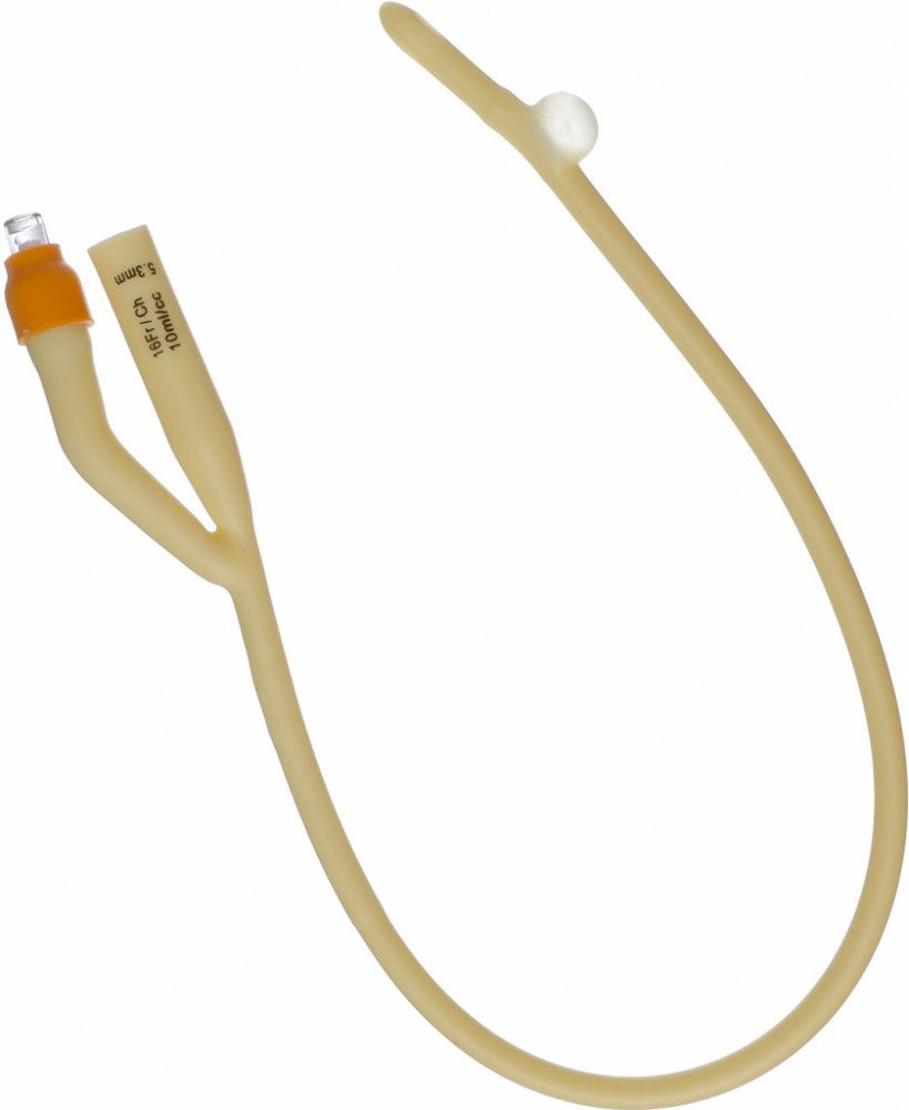 2-cestný permanentní močový katétr typ Nelaton Materiál - silikonizovaný latex Atraumaticky zaoblený konec katétru se 2 bočními otvory Balónek 10 ml