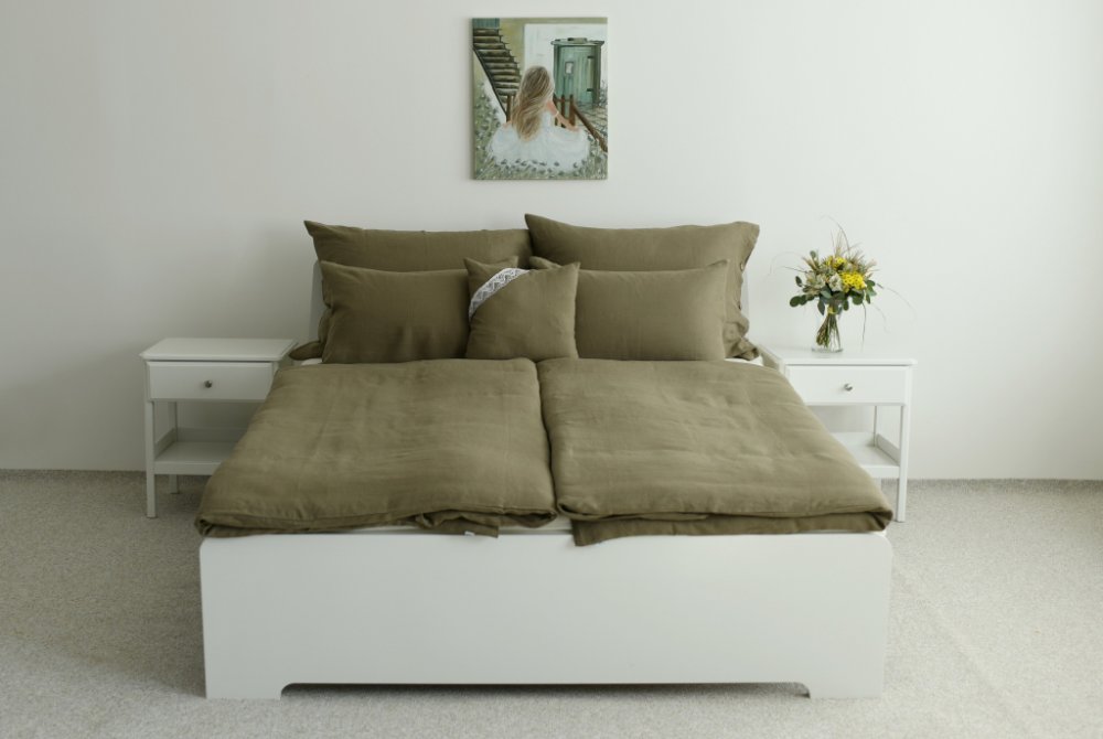 Elegantní a přírodní krása do vaší ložnice! Naše khaki lněné povlečení je dokonalým spojením jednoduché elegance a luxusního komfortu. Díky jeho přírodnímu původu nabízí jedinečný pocit pohodlí a klidu, který si zamilujete.