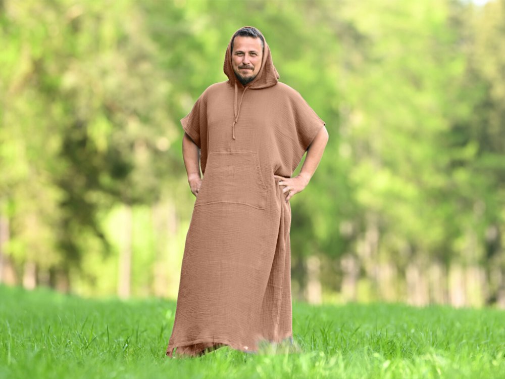 Pánské mušelínové pončo v hnědé barvě připomíná stabilitu a klid přírody. Díky hebkému materiálu ze 100% bavlny se příjemně nosí a zároveň zahřeje, když je potřeba. Je to kousek, který oceníte v sauně, na chalupě nebo při večerním odpočinku, kdy chcete mít jistotu pohodlí bez zbytečností.