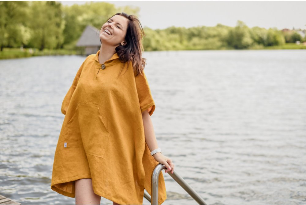 Užijte si relaxační den u vody v pohodlí a stylovém ponču z lnu!