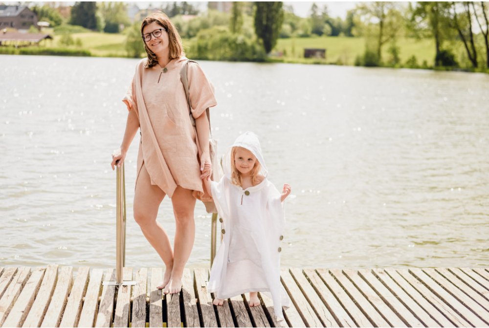 Užijte si relaxační den u vody v pohodlí a stylovém ponču z lnu!