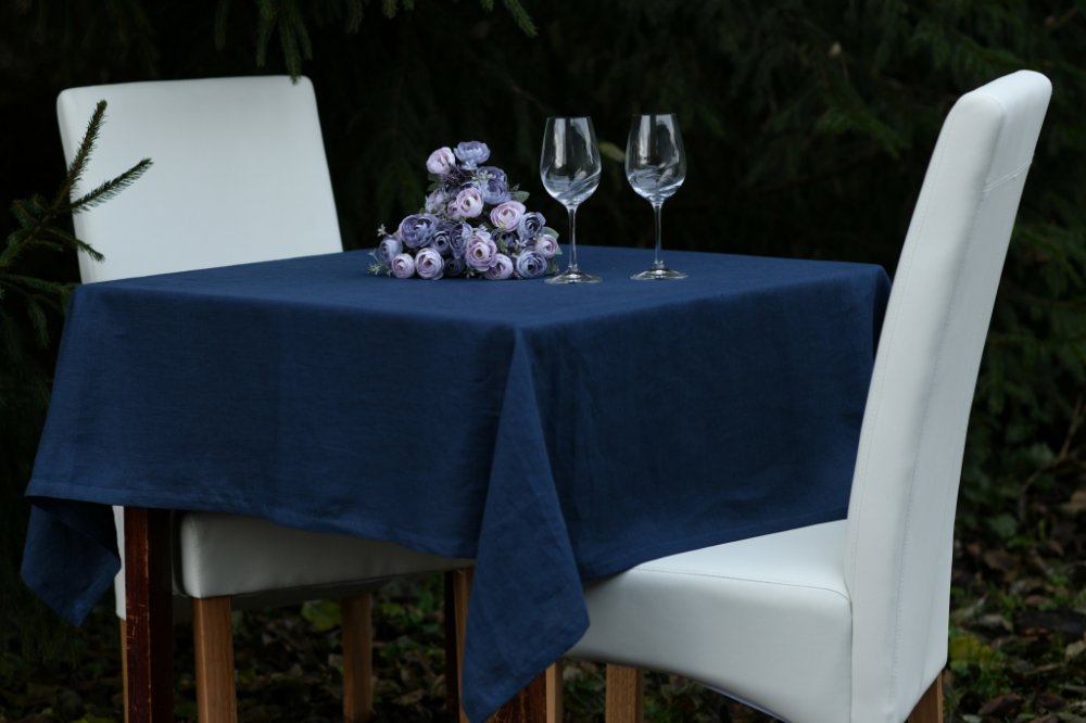 Nelly Tmavě modré lněné ubrusy a běhouny 140x200 cm