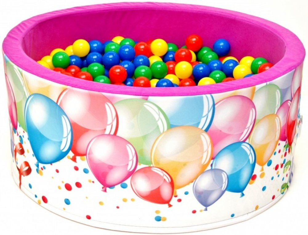 NELLYS Suchý bazén s míčky - růžový s balónky 90x40 cm