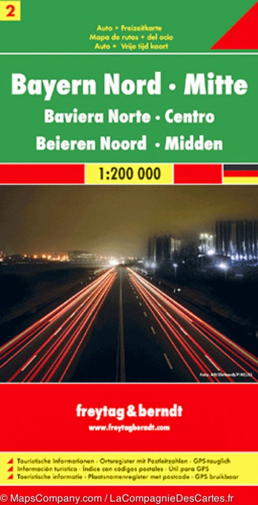 Kromě přehledného designu má automapa Severní Bavorsko - Franky - Horní Falc 1:200 000 mnoho dalších informací, jako je stav silnic, památky a kempy. Rychlou orientaci umožňuje i rozsáhlý lokační index. turistické informace; index místa s PSČ; GPS kompatibilní, oboustranný; Automapa Severní Bavorsko - Franky - Horní Falc je list 2 ze série Německo 1:200 000. Automapy freytag berndt jsou dostupné p...