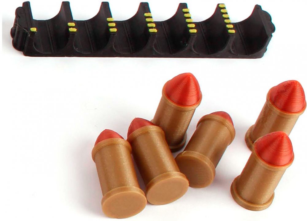 Sada obsahuje 3 druhy střeliva (náboje, palivo do plamenometu a energetické články). Zásobníky mají kapacitu na 6 výstřelů a jsou vyrobeny tak aby do nich střelivo ideálně zapadlo, což poskytuje prima pocit z nabíjení vaší vetřelcobijky :)