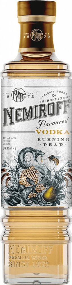 Spojení ultra čisté vodky Nemiroff, starodávné ukrajinské medovo-papričkové receptury a příchutě svěžích hrušek přináší zcela nový chuťový vjem. Nemiroff Burning Pear nabízí sametovou, jemnou chuť, která se otevírá sladkými, medovými tóny hrušek, po nichž následuje bohatý dotek tepla.