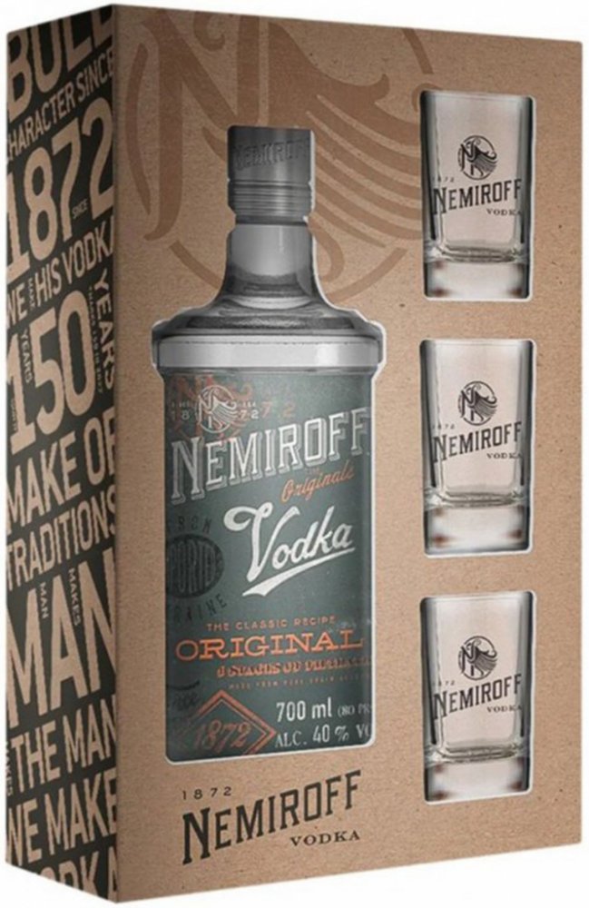 Nemiroff Original 0,7 l 40% (dárkové balení 3 skleničky)
