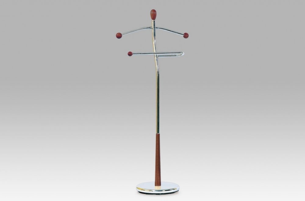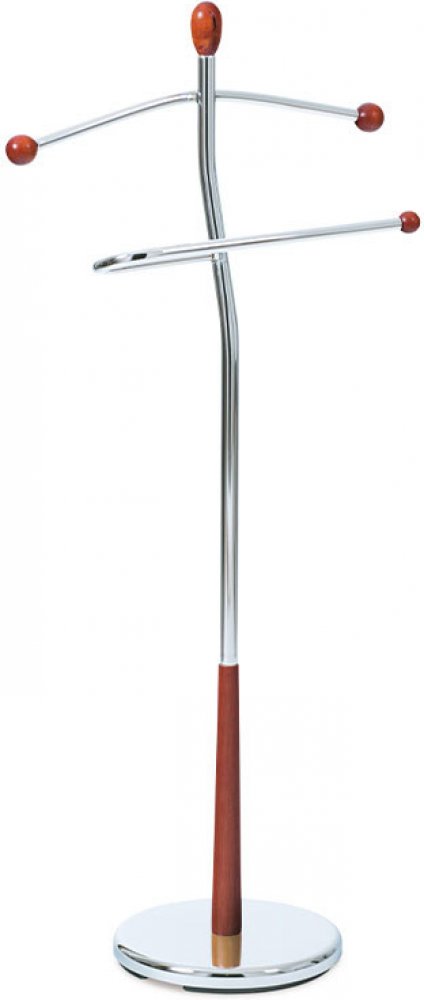 Moderní němý sluha, jehož součástí je stojan na kalhoty a ramínko na košile, saka apod.
