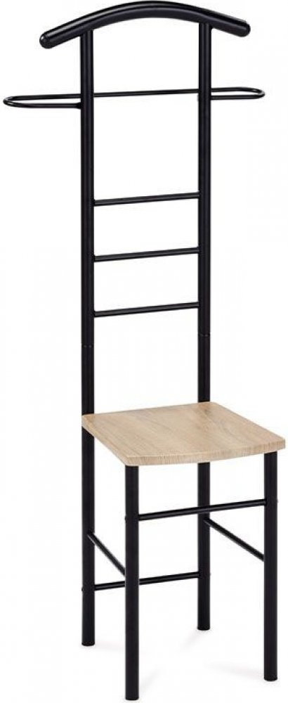 Designový, praktický a multifunkční němý sluha s integrovaným sedákem. Kostra je z kovových trubek lakované černou matnou práškovou barvou. Výška 119 cm Vám umožní zavěšení oblečení i doplňků zcela bez pomačkání. Nosnost stojanu je až 90 kg, což umožňuje stojan používat i jako plnohodnotnou židli pro nečekané návštěvy. Sedák je z MDF v 3D dekoru dub sonoma. Nohy konstrukce jsou zakončeny plastovým...