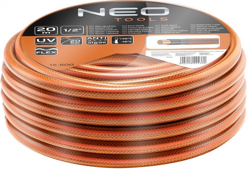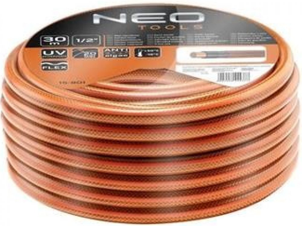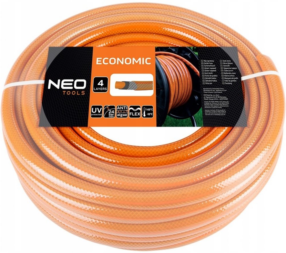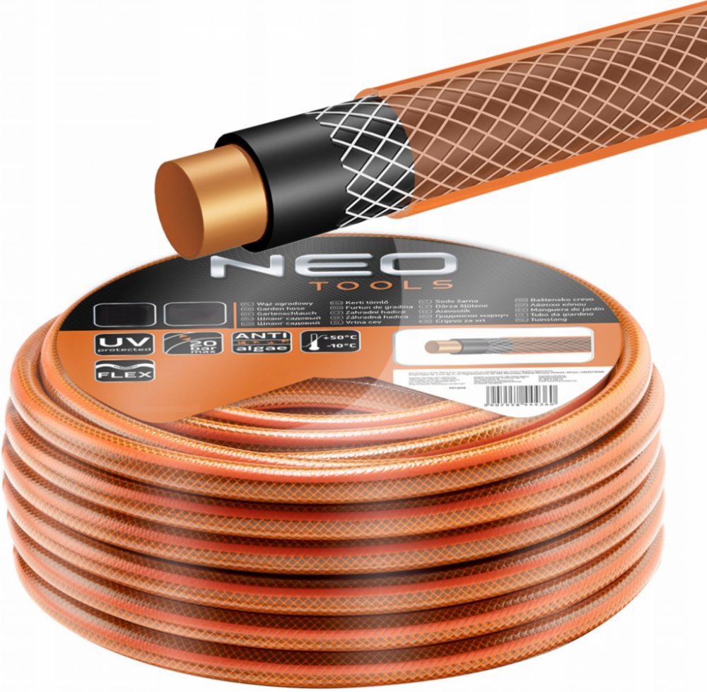 Zahradní hadice NEO TOOLS 30m - 4 vrstvy 3/4"Tato 4 vrstvá hadice NEO TOOLS je vyrobena z kvalitního PVC. Hadice umožňuje dlouhodobě efektivní a bezporuchové používání díky ochraně proti škodlivým účinkům slunečního světla a systému zabraňujícímu růstu řas. Hadice může být používána do tlaku 20 barů. Hadice udržuje veškeré pracovní parametry v teplotním rozmezí od -10 do 50 stupňů Celsia. Výkon 10...