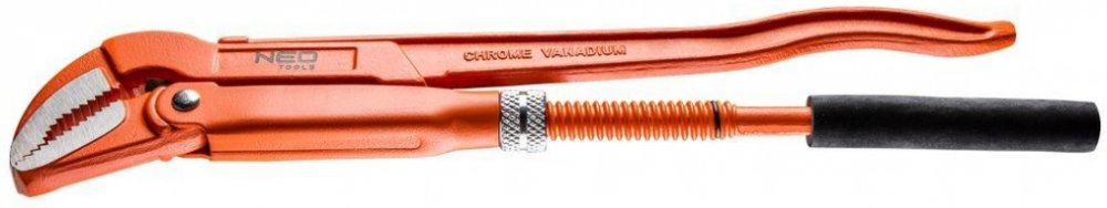 Zahnutý trubkový klíč NEO 45 s délkou 330 mm, rozevřenou čelistí 40 mm/1 ". Výrobek vyrobený podle DIN5234. Kovaný z vysoce kvalitní chrom-vanadové oceli s broušenými a leštěnými čelistmi. Rukojeť s protiskluzovým povrchem dobře padne do ruky a zajišťuje silnou přilnavost. Kvalita nástroje potvrzena certifikátem TÜV a 25letou zárukou výrobce. Značka NEO splňuje očekávání profesionálů.