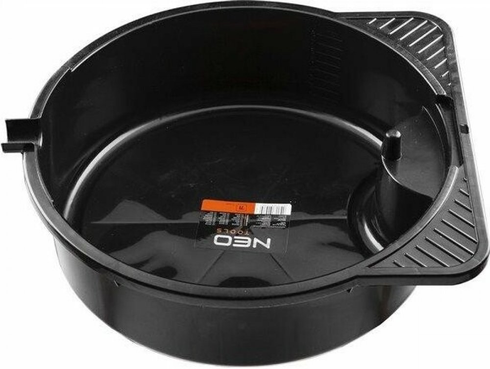 Nádoba na olej 7L NEO tools, uzpůsobená pro odložní starého olejového filtru na odkapání, s vylévacím hrdlem.