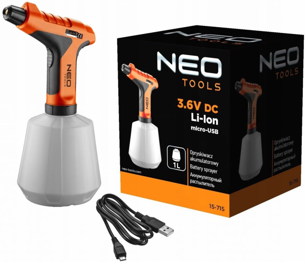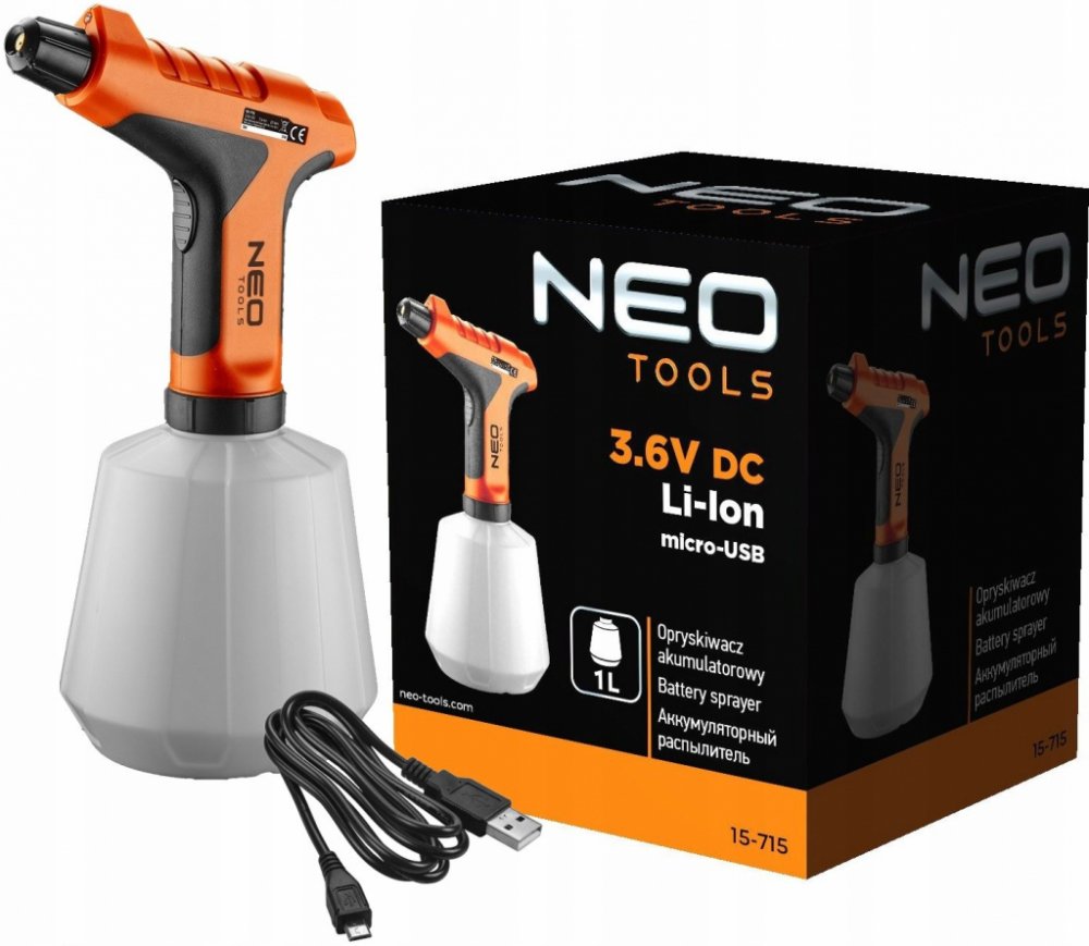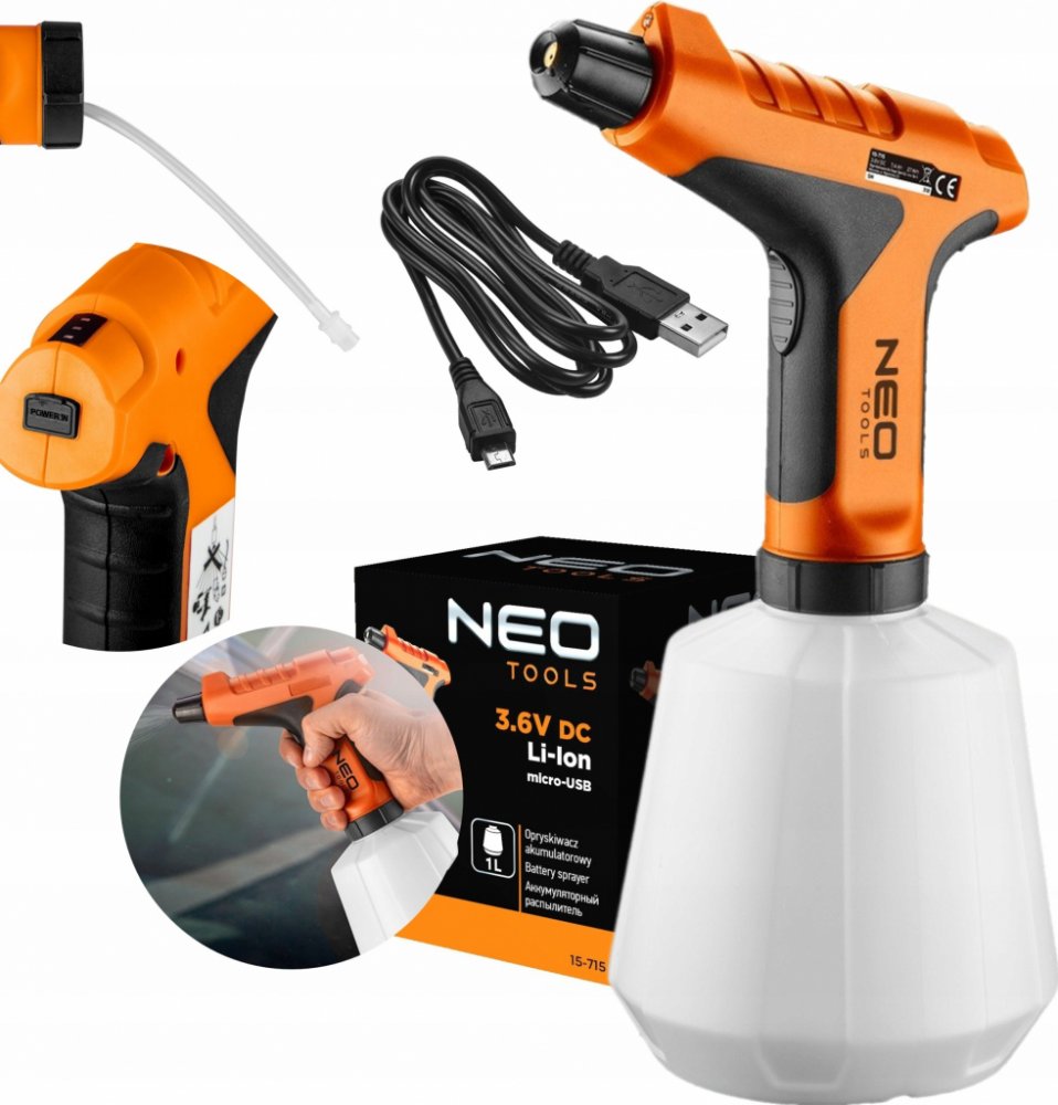Akumulátorový ruční postřikovač micro-USB 3,6V 15-715, NEO TOOLS je určen pro zahrádkářství, ale je užitečný i v domácnosti.