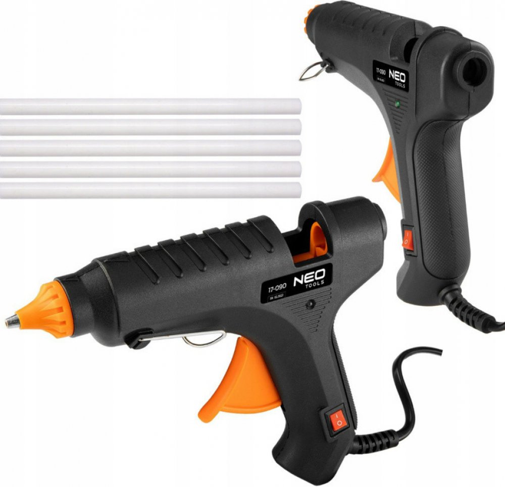 Lepicí pistole NEO na lepicí tyčinky o průměru 11 mm, výkon 60 W. Lepicí pistole rychleji roztaví lepidlo díky vysokému výkonu a provozní teplotě. Lepidlo se taví 2–3krát rychleji než u standardní lepicí pistole. Ergonomicky tvarovaná dlouhá vypouštěcí hlava, navržená tak, aby snížila námahu při provozu a zvýšila účinnost lepidla. Žáruvzdorné tělo. Bez odkapávání, vyměnitelná kovová tryska pro přesné nanášení lepidla. Ideální pro profesionální aplikace, jako je montáž nábytku, pokládání koberců. Vysoká propustnost lepidla 22g/min. Shoda s evropskými bezpečnostními normami je potvrzena certifikátem CE. Certifikát TÜV Rheinland zaručuje vysokou kvalitu a spolehlivost produktu. Značka NEO splňuje očekávání profesionálů.