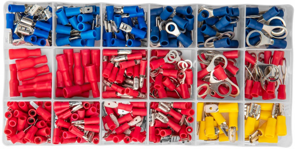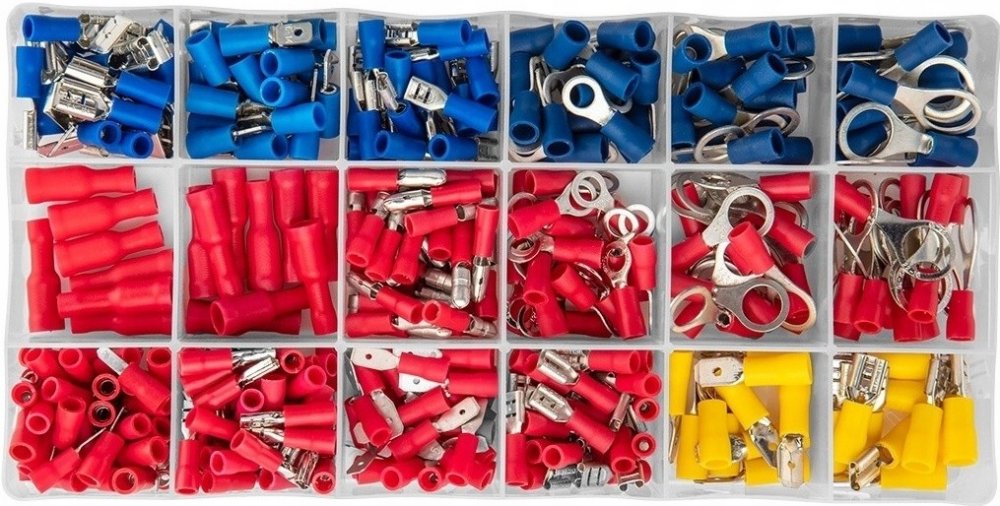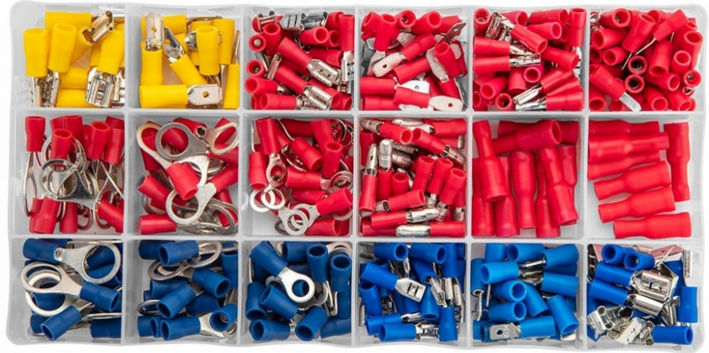 Sada elektrických konektorů NEO (obj. č. 01-535) obsahuje 420 nejoblíbenějších izolovaných svorek.