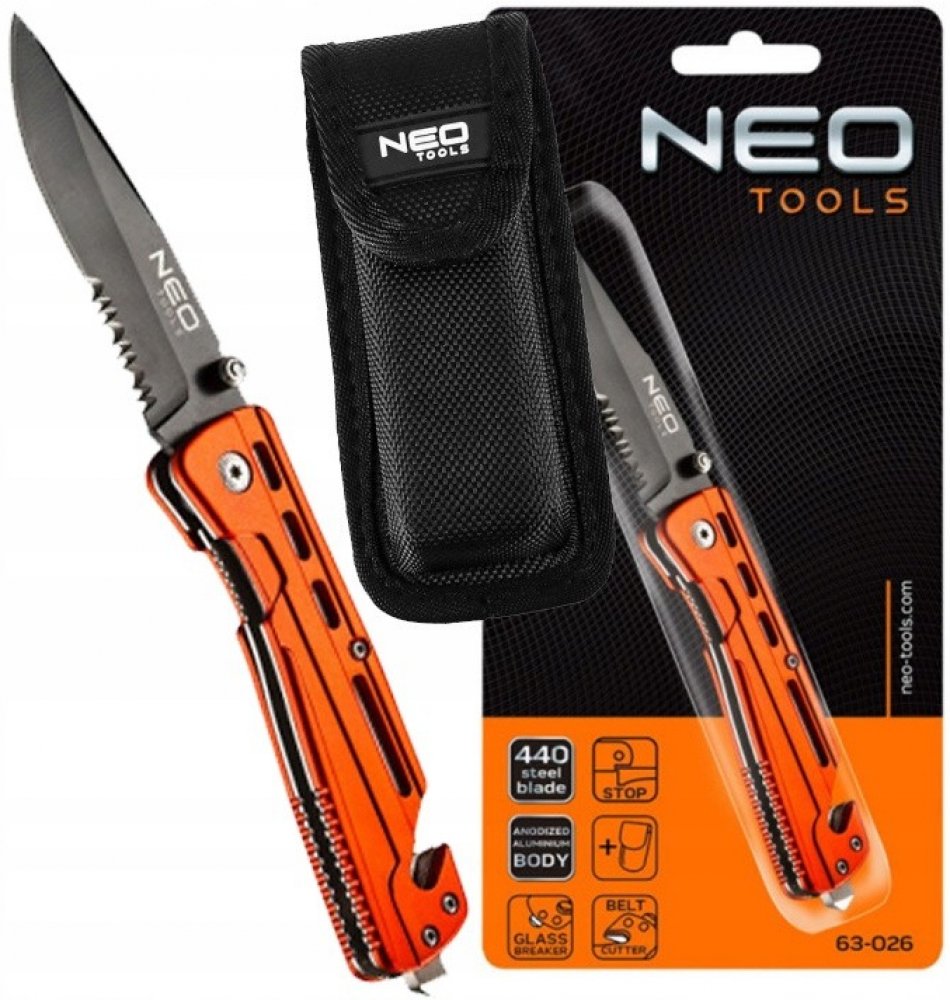 Neo Tools zavírací 85 mm 200 mm 24 mm 155 g nerezová ocel pro každodenní použití (7–9 cm) rychlé otevření eloxovaný hliník s vysokou odolností proti vlhkosti s palcovým čepem s částečně pilovitým ostřím