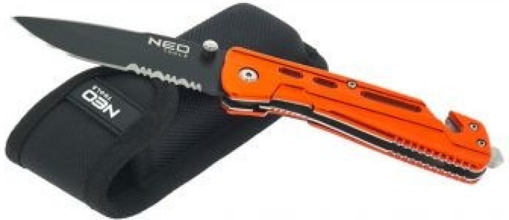Zavírací nůž NEO se zámkem (ref. 63-026) má čepel z oceli 440, dlouhou 8,5 cm. Bezpečnost při práci zajišťuje pojistka proti neočekávanému zavření. eloxované hliníkové tělo zvyšuje trvanlivost výrobku a odolnost proti korozi. Speciální čepel umožňuje řezání pásu, což výrazně usnadňuje vyproštění v případě nouze v autě. Pouzdro z odolného nylonu usnadňuje skladování a přepravu. Značka NEO splňuje o...