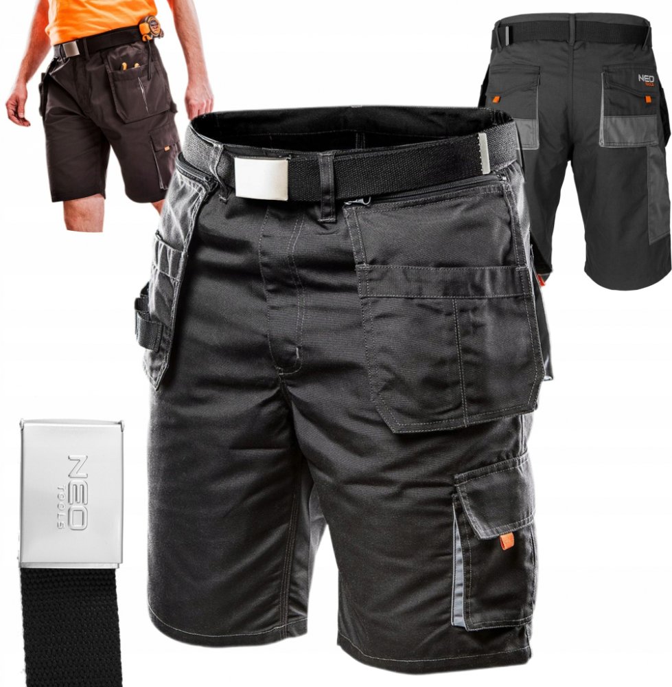 NEO Tools šortky letní černé bavlna/polyester ve stavebnictví, průmyslu pánské