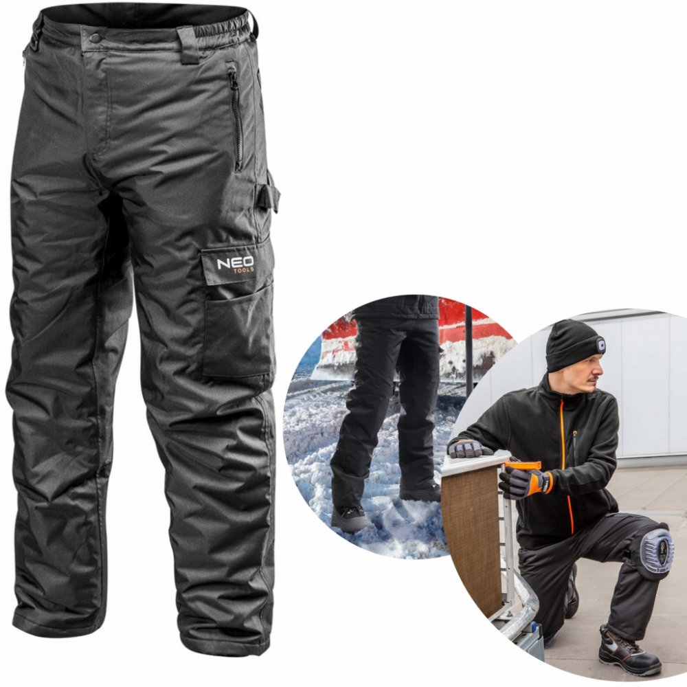 NEO Tools kalhoty zimní šedé polyesterové univerzální pánské prodloužená velikost 194 cm se stahováním na gumu 3–4 kapsy do exteriéru