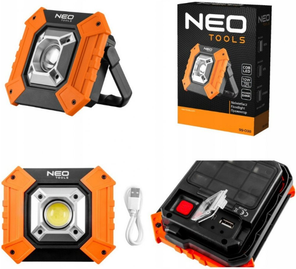 NEO TOOLS Světlomet COB 750 lm na baterie, oranžový