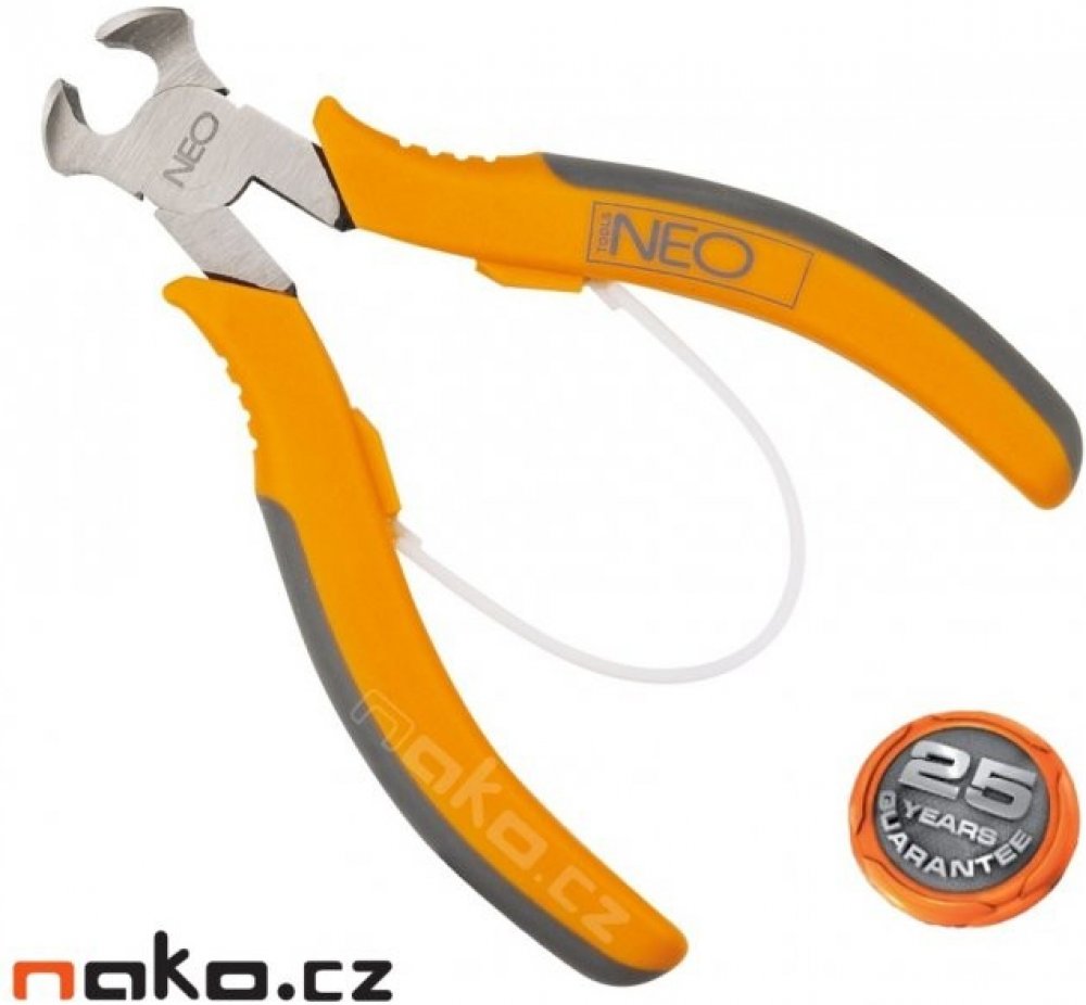 Štípací stranové kleště NEO TOOLS pro jemnou mechaniku 115mm 01-101 - kleště štípací čelní - štípačky, chromované - podlouhlé ostří pro přesné štípání a jiné jemné práce - nylonový pružný pásek s dlouhou životností pro snadné rozevírání kleští - přesná výroba kleští - tvrdost břitů 55-60 HRC - břity doplňkově induktivně zakalené zaručují přesné ucviknutí materiálu - pevné a ergonomické uchopení pro pohodlí při práci - délka 115 mm - záruka 25 let na výrobní a materiálové vady O značce NEO TOO...