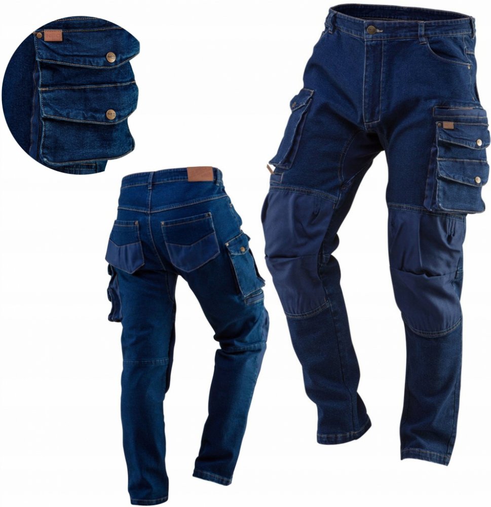 Neo Tools pracovní kalhoty denim výztuhy kolen modré