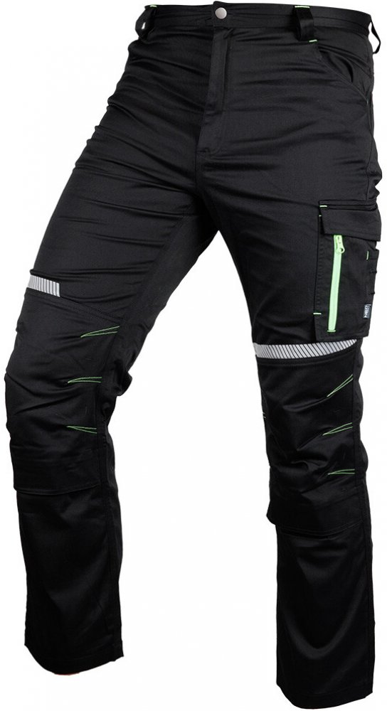 Odolnost zvyšují pevné trojité švy a profilovaná kolena, která zároveň poskytují vyšší komfort při práci v kleče. Kalhoty jsou vybaveny kapsou na chrániče kolen, multifunkčními kapsami, praktickými háčky a poutky na nářadí. Pro lepší viditelnost a vyšší bezpečnost je na přední straně umístěn reflexní potisk nad koleny.