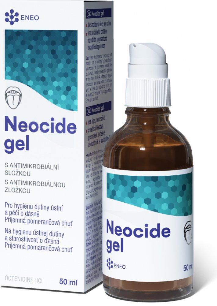 Neocide gel (0,11% Octenidine) je určený k udržování hygieny v dutině ústní. Velmi vhodný v případech vyžadujících zvýšené požadavky na ústní hygienu, jako např. v případě fixních rovnátek, onkologických pacientů apod.