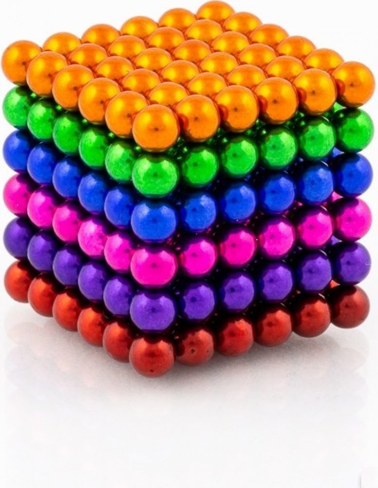 Magnetická kostka je složena z 216 neodymových magnetických kuliček v barevném mixu (zlatá, zelená, modrá, růžová, fialová, červená) o průměru 5 mm. Jedná se o mix šesti barev, které můžete poskládat dle vaší fantazie.