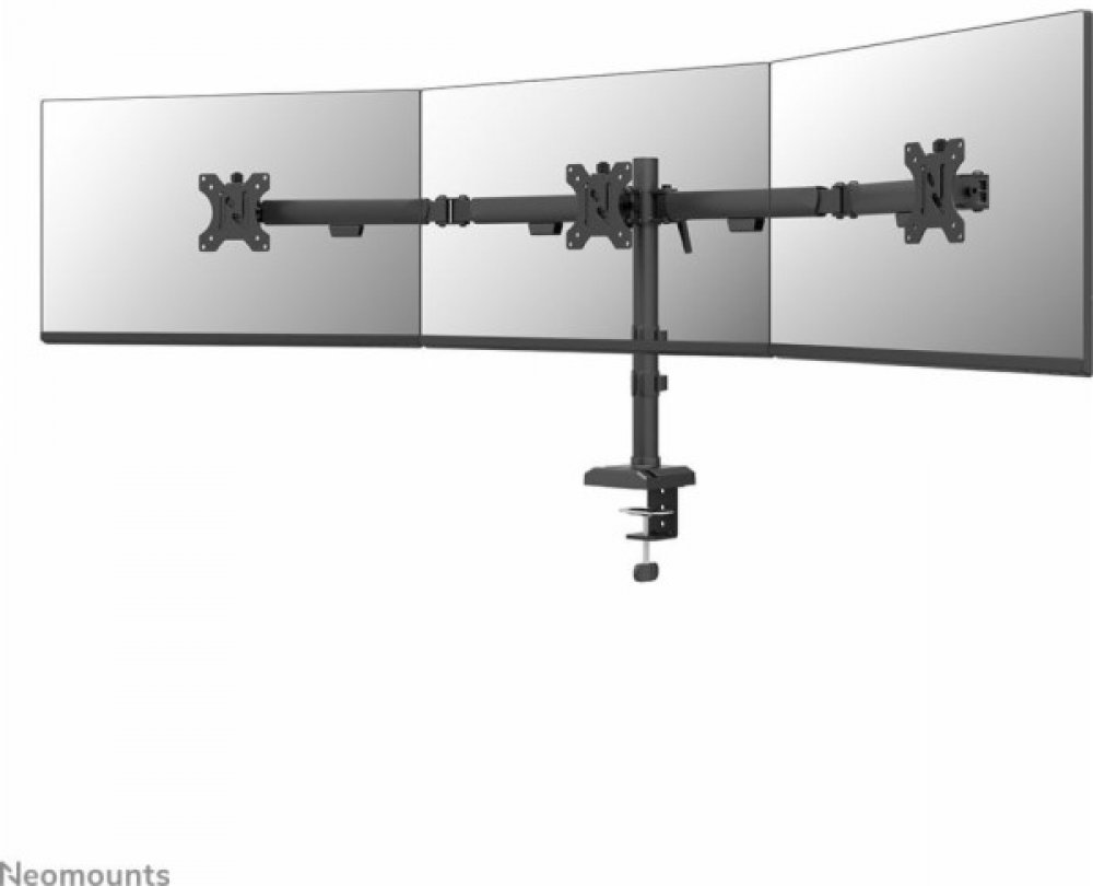 Rám pro monitor Neomounts NERO je ideální volbou pro ty, kteří hledají pevné a univerzální řešení pro tři monitory až do velikosti 27" s nosností 6 kg na obrazovku. Toto plně pohyblivé rameno poskytuje maximální flexibilitu díky pokročilé technologii naklápění (90°), otáčení (360°) a otočení (180°), což umožňuje nalezení optimálního úhlu pohledu pro ergonomickou polohu při práci.Univerzální držák stolu s ručním nastavením výšky a hloubky umožňuje přizpůsobení pracovního prostoru přesně dle vašich potřeb.Chytrý mechanismus zastavení 180° zabraňuje kontaktu s blízkou stěnou nebo oddělovacím panelem, když je nainstalován.Vysokou stabilitu a odolnost zajišťuje svařovaná základna.Praktický systém správy kabelů udržuje kabely úhledně vedené.Základna DS60-600BL3 poskytuje také prostor pro umístění telefonu, což pomáhá udržet pracovní plochu čistou a organizovanou.Podporuje monitory s rozměry 75x75 nebo 100x100 mm, přičemž Neomounts nabízí různé volitelné VESA adaptéry pro nestandardní otvory.Možnost funkce mikroregulace pro bezproblémové nastavení obrazovek.Snadná a rychlá instalace díky systému Easy-release a připojování upínáků ke stolu.Uchycení lze provést ručně, ale také pomocí imbusového klíče nebo vrtačky pro rychlejší montáž.Pákový mechanismus pro rychlé nastavení výšky ramene bez dalších nástrojů.Pečlivost při zohledňování udržitelnosti - balení je 100% bez plastů z kartónu a papíru recyklovatelného materiálu.