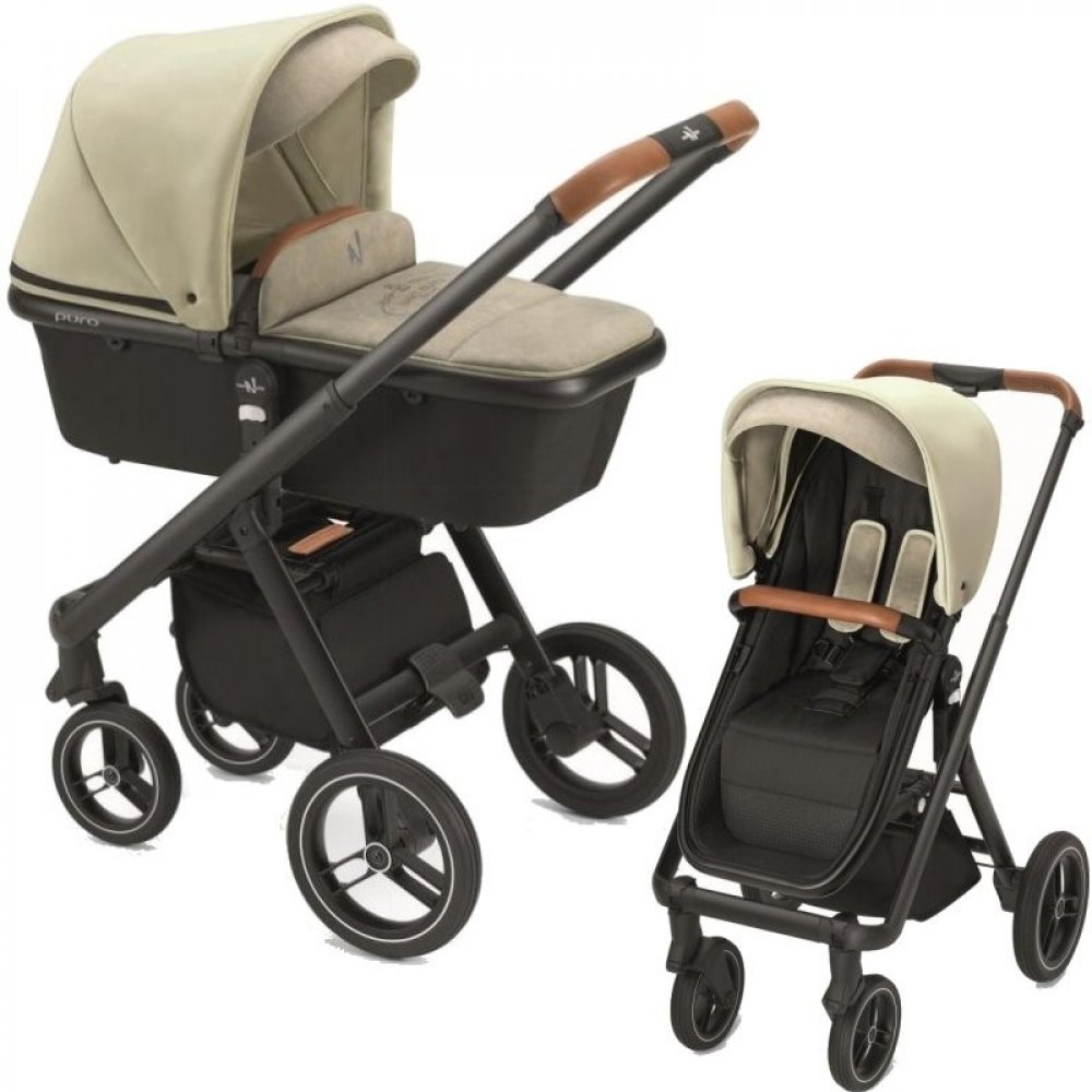 Kočárek Puro City je velmi lehký. Snadné je také jeho skládání, které každý zvládne jednou rukou. Součástí podvozku je prostorný koš s magnetem, z koše se tak nic nevytratí. Stylový a nadčasový vzhled kočárku podporuje nastavitelná rukojeť potažená ručně šitou EKO kůží.