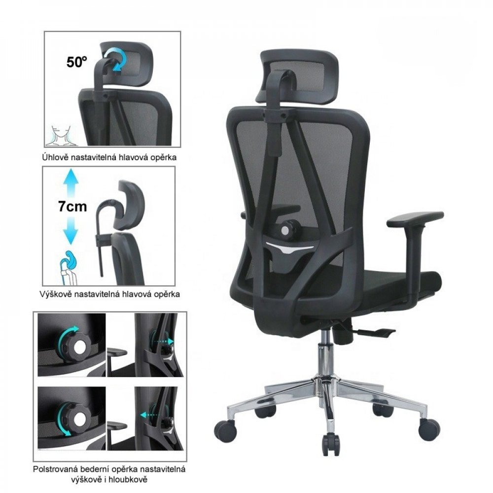 - zádovou opěrku je možné polohovat až do náklonu 135 stupňů a aretovat v mnoha polohách náklonu