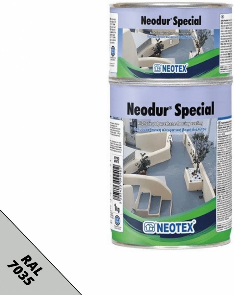 Oblasti použitíExteriérové nebo interiérové podlahy průmyslových zařízení, parkovišť, skladů, čerpacích stanic atd.Skladové rampy, automobilové rampyExteriérové nebo interiérové kovové povrchyTyto povrchy vyžadují vhodnou přípravu a základní nátěr před aplikací Neodur® Special.Vlastnosti - VýhodyOdolný vůči UV záření a povětrnostním podmínkám, s výjimečnou odolností proti žloutnutí - obsahuje UV filtryVelmi vysoká přilnavost a odolnost proti otěru a poškrábáníVynikající odolnost vůči chemikáliím a mechanickému zatíženíRozsah provozních teplotŠiroká škála aplikacíIdeální pro vytvoření exteriérových protiskluzových podlahNávod na použitíPříprava podkladu (beton)Beton musí mít minimálně třídu C20/25 s pevností v tahu ≥ 1,5 MPa a nechat jej zatvrdit minimálně 28 dníCementový podklad musí být řádně mechanicky připraven (např. broušením, otryskáváním, frézováním atd.)Povrch musí být suchý, chráněn před vzlínající vlhkostí, stabilní, čistý a zbavený prachu, mastnoty, oleje atd.Povrch musí být co nejhladší a nejrovnoměrnějšíKovové povrchy (železo - ocel)Kovové povrchy musí být řádně připraveny pískováním nebo broušením drátěnou kartáčkouMěly by být suché, bez prachu, nečistot, mastných a olejových látekV oblastech s rezí se doporučuje lokálně aplikovat antikorozní přípravek proti rezivě Neodur® MetalforceZákladní nátěrPro stabilizaci podkladu a uzávěr pórů, stejně jako pro vytvoření optimálních podmínek pro silnější přilnavost a lepší pokrytí následného polyuretanového nátěru se doporučuje použít epoxidový základní nátěr na bázi rozpouštědel Epoxol® Primer nebo vhodný alternativní základní nátěr ΝΕΟΤΕΧ® (viz tabulka) v závislosti na povrchu. U podkladů s větší pórovitostí může být potřeba další vrstva základního nátěru.AplikaceHladký polyuretanový povlakPo zaschnutí základního nátěru se doporučuje nanést první vrstvu Neodur® Special zředěného 10 % hmotnostně rozpouštědlem Neotex® PU 0413 válečkem, štětcem nebo bezvzduchovým stříkáním. Druhá vrstva se nanáší stejným způsobem ~24 hodin po nanesení první vrstvy (závisí také na atmosférických podmínkách), zředěná 5-10 % rozpouštědlem Neotex® PU 0413. Při případných dalších vrstvách se Neodur® Special ředí 5 % hmotnostně s rozpouštědlem Neotex® PU 0413.Obe složky A a B se smíchají ve stanoveném poměru (75A: 25B) a po přidání rozpouštědla se míchají během aplikace. 3 - 5 minut elektrickým míchačem s nízkými otáčkami. Důležité je důkladně promíchat na dně nádoby, stejně jako po stranách, aby se tuhá složka (složka B) rovnoměrně rozložila. Směs se nechá krátce působit v nádobě (~1-2 minuty) a poté se aplikuje. Před mícháním se doporučuje mechanické míchání složky A.Spotřeba Neodur® Special: 0,35 kg/m2 ve dvou vrstváchProtiskluzový polyuretanový povlak s přídavkem Neotex® Antiskid MPo zaschnutí základního nátěru se Neodur® Special aplikuje, jak je uvedeno výše, válečkem, štětcem nebo bezvzduchovým stříkáním. Během míchání Neoduru® Special před aplikací poslední vrstvy systému se do směsi přidá protiskluzová přísada Neotex® Antiskid M v poměru 1,5-2,5 % hmotnostně. Poté se směs znovu promíchá nízkootáčkovým elektrickým míchačem po dobu ~ 1 minuty a Neodur® Special se nanese na povrch válečkem nebo štětcem.Spotřeba Neodur® Special: 0,35 kg/m2 ve dvou vrstváchProtiskluzový polyuretanový nátěr s přidáním křemičitého písku M-32Po základním nátěru a nanesení první vrstvy Neoduru® Special (zředěného 10 % hmotnostně s rozpouštědlem Neotex® PU 0413) se doporučuje na ještě čerstvou vrstvu Neoduru® Special nasypat křemičitý písek M-32 až do saturace, s odhadovanou spotřebou písku 2 - 3 kg/m2. Po zaschnutí by měly být všechny uvolněné zrnka odstraněny vysavačem s vysokým sacím výkonem a všechny nerovnosti povrchu by měly být zbroušeny.Povrch se poté utěsňuje přípravkem Neodur® Special, zředěným 5-10 % hmotnostně rozpouštědlem Neotex® PU 0413, naneseným v 1 nebo 2 vrstvách podle požadované protiskluzovosti.Orientační spotřeba Neodur® Special: ~0,40-0,50 kg/m2 ve dvou nebo třech vrstvách