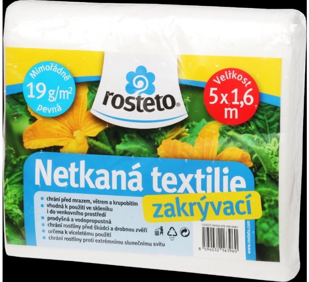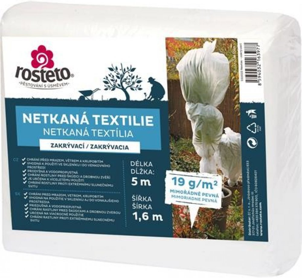 Bílá netkaná textilie je určena k ochraně rostlin před mrazem, větrem, krupobitím a škůdci a drobnou zvěří. Propouští světlo i vodu a její hmotnost (19g/m2) umožňuje zakrývání rostlin bez nutnosti budování konstrukce.