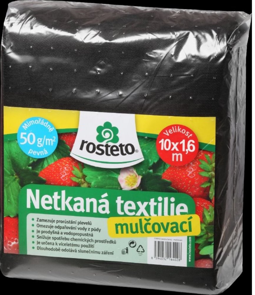 Mulčovací černá netkaná textilie má výborné mulčovací vlastnosti, zabraňuje prorůstání plevele, půda se v jarním období dříve prohřívá a textilie dokáže naakumulovanou teplotu v půdě zadržet na delší dobu, což umožňuje ranější výsev.