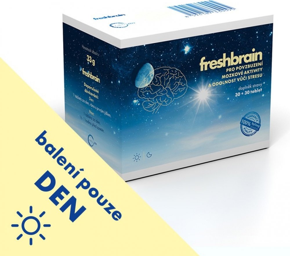 Přes den potřebuje váš mozek obstát v často naročných a prolínajících se pracovních i rodinných povinnostech. Denní složka zcela přírodního přípravku FRESHBRAIN® usnadňuje překonávání stresu a obnovuje síly při únavě a vyčerpání.