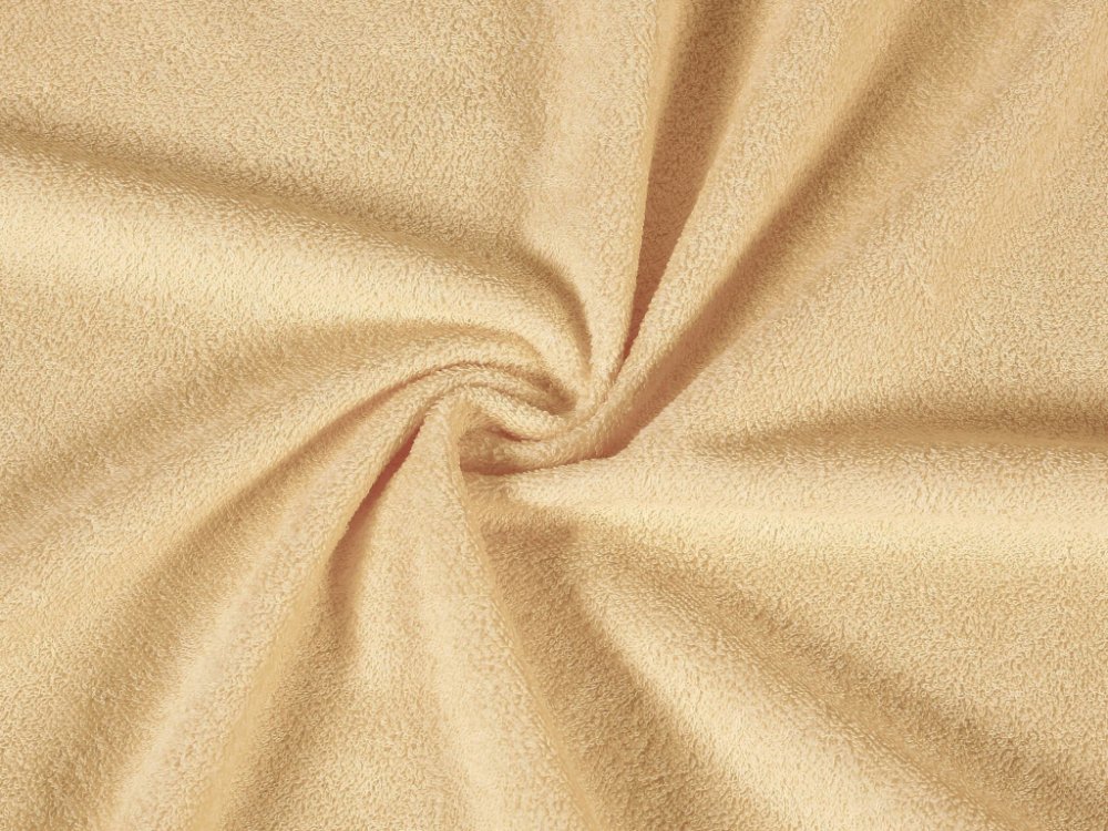 Naše Nepropustné Froté béžová metráž je látka, která spojuje jemnost a příjemný materiál.