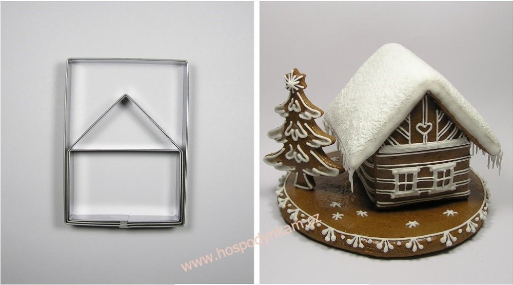 Podstavec chaloupky lze upéci z jakéhokoli rozměru, viz. ilustrační obrázek. Okolí chaloupky pak můžeme dozdobit dalšími tvary v podobě stromečku.
