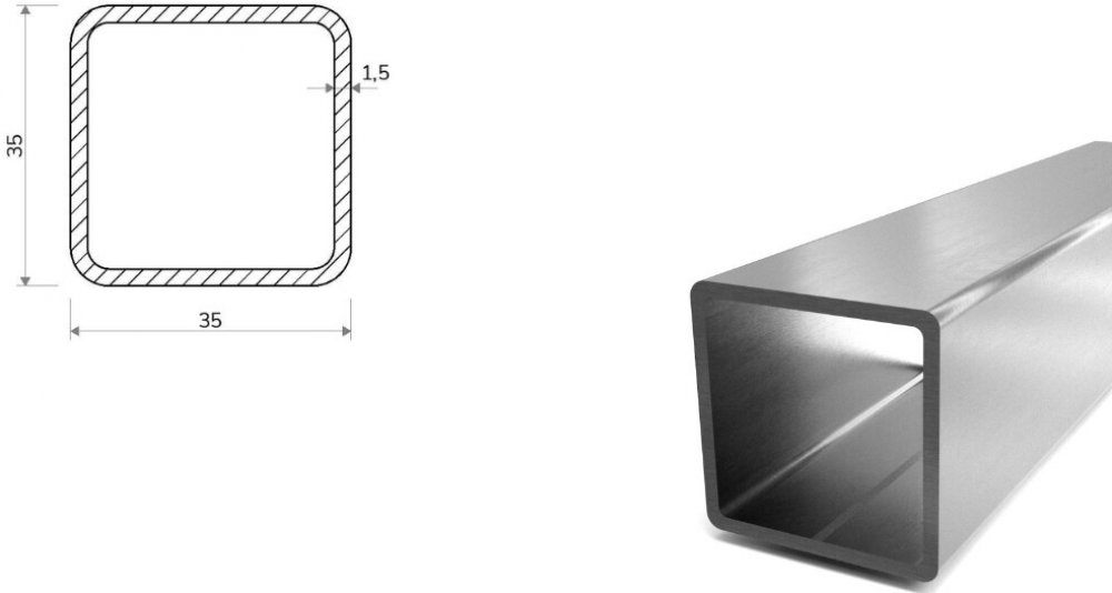 Nerezový jekl 35x35x1,5 (1.4301/7) - brus240 je nerezový svařovaný profil čtvercového tvaru s podélným svárem jakosti 1.4301/7. Je specifický tím, že jeho povrch je upraven metodou tzv. broušení. To označuje brus240. Díky tomu je povrch tohoto nerezového materiálu matný a jemně hrubší. Tento nerezový čtvercový jekl je zaručeně svařitelný a nejvíce se využívají na výrobu sloupků, madel nebo výplní nerezového zábradlí. Tento čtvercový nerezový jekl je vhodný k ohybům i sváření, díky svému tvaru i k montování. Nerez jekl s tloušťkou 1,5 mm je dodáván ve výrobní délce 6 m s hmotností 9,66 kg. Váha produktu na 1 m je 1,61 kg.