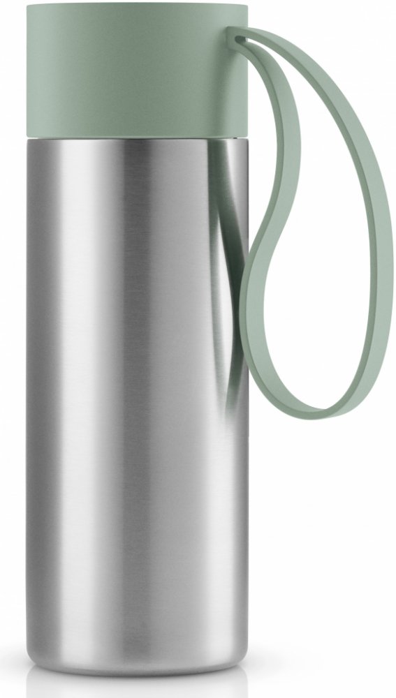 Nerezový termohrnek To Go značky Eva Solo s dvojitou stěnou dokonale izoluje a udržuje váš nápoj při správné teplotě až po dobu 5-6 hodin. Perfektně těsní a hodí se tak pro nošení v kabelce, batohu, či na připevnění na kolo nebo do auta. Díky praktickému silikonovému řemínku na plastovém víčku ve světle modré barvě se také snadno přenáší v ruce.