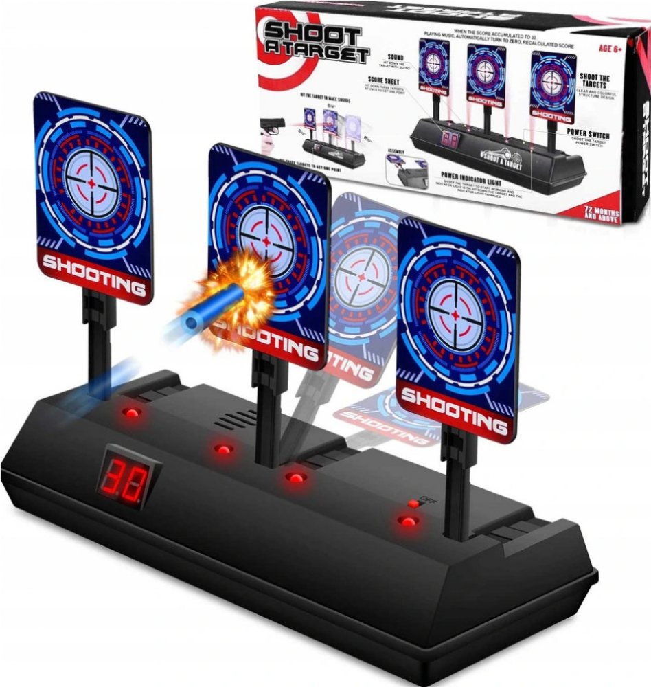 Disk 3 CELE - Tento jedinečný disk umožní vašemu dítěti cítit se jako skutečný střelec. Zařízení je vybaveno LCD displejem, který zobrazuje dosažené body. Když jsou všechny terče vystřeleny - automaticky se zvednou. Dítě může soutěžit s vrstevníky nebo blízkými o titul nejlepšího střelce.