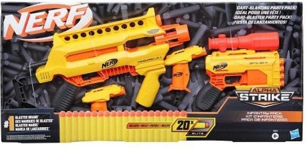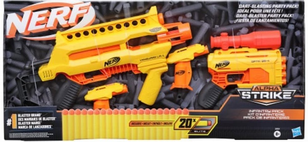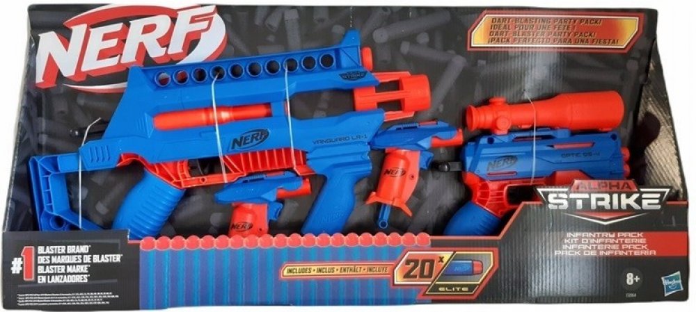 Tato sada Nerf Alpha Strike obsahuje 4 blastery a 20 šipek Nerf Elite pro okamžité boje – chyťte přátele a rodinu a pusťte se do hry Nerf! 24dílný pěchotní balíček obsahuje 4 blastery a 20 oficiálních šipek Nerf Elite.