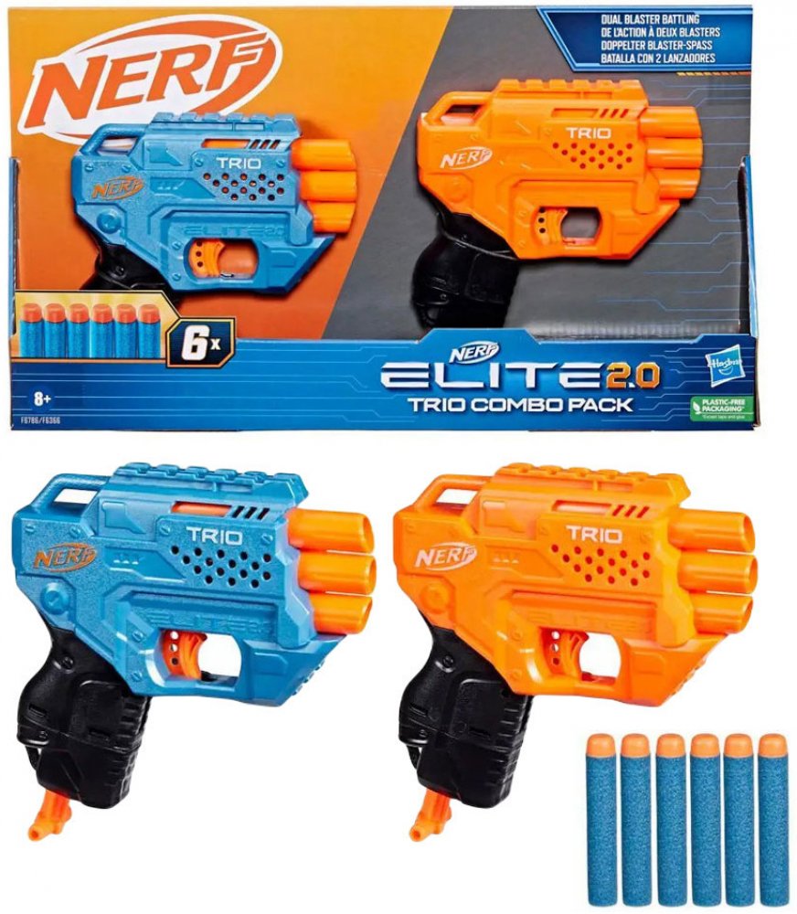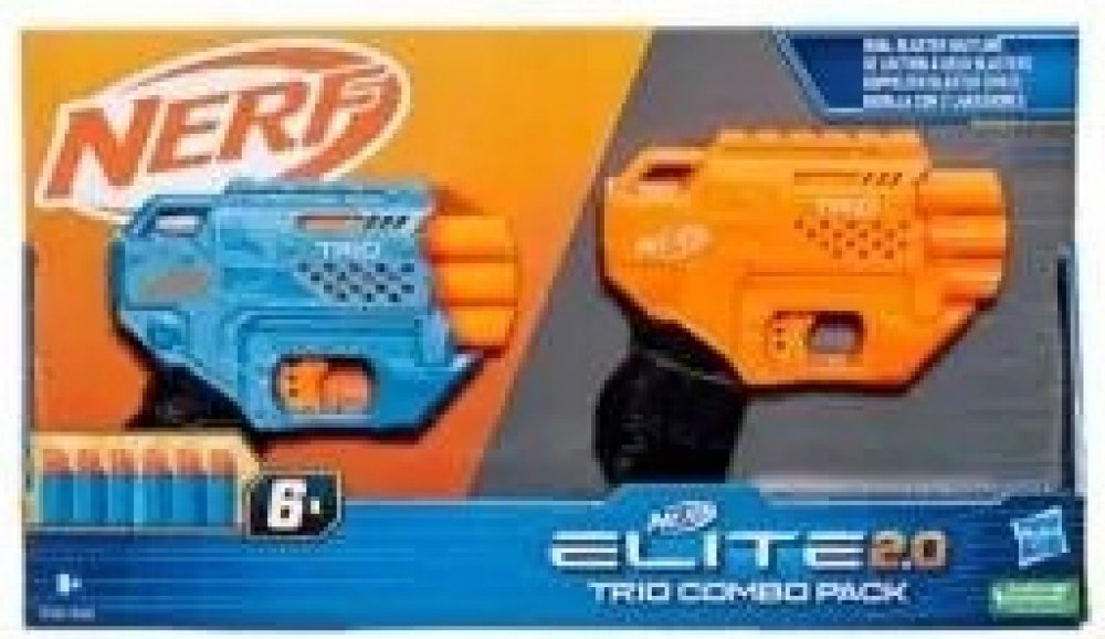 Začněte bojovat dvěma blastery díky balíčku Nerf Elite 2.0 Trio Combo, který obsahuje 2 vrhače a 6 šipek Nerf Elite.