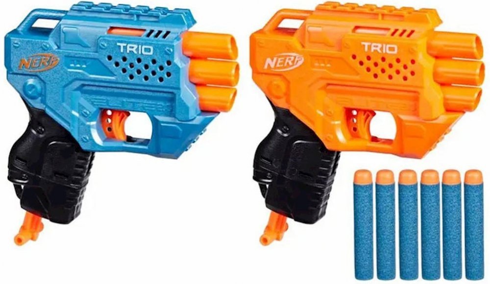 Sada obsahuje 2 hračkové vrhače Nerf Elite 2.0 Trio, každý se 3 hlavněmi, takže můžete vystřelit 3 šipky v řadě v bitvách Nerf.