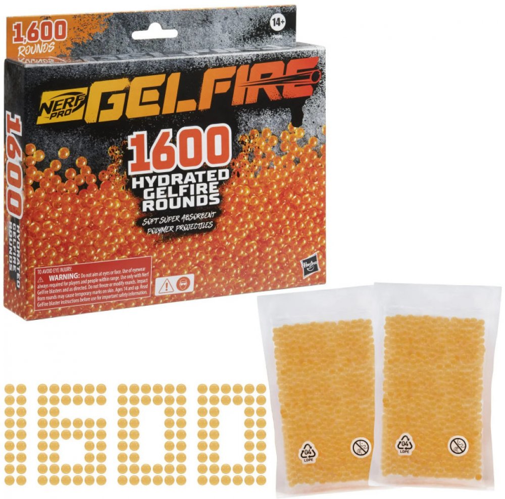 Vodní kuličky Nerf Gelfire jsou revoluční municí, která přináší novou úroveň hraní s blastery Nerf Gelfire. Sada obsahuje 1600 speciálních kuliček vyrobených ze superabsorpčního polymeru, které byly předem hydratovány a jsou připraveny k okamžitému použití. Po zasažení cíle se rozpadnou a eliminuje nutnost úklidu, což z nich činí mimořádně pohodlné řešení pro dynamické potyčky jak ve venkovním prostředí, tak v uzavřených prostorách.
