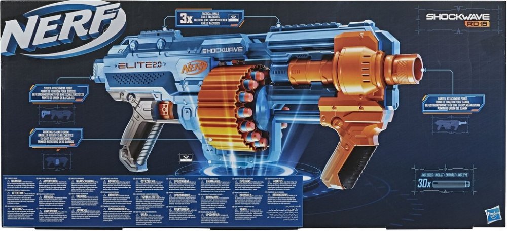 Tato sada se skládá z odpalovacího zařízení Elite 2.0 Shockwave RD-15 a 30 šípů Nerf díky speciálně navržené pěně nezpůsobují ostatním hráčům bolest. Figurky jsou z řady Elite. Sada umožní hodiny intenzivní zábavy společně s ostatními spoluhráči.