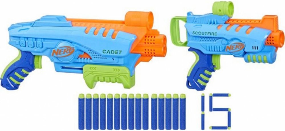 - Balení obsahuje: 2 blastery, 15 šipek a 2 terče.