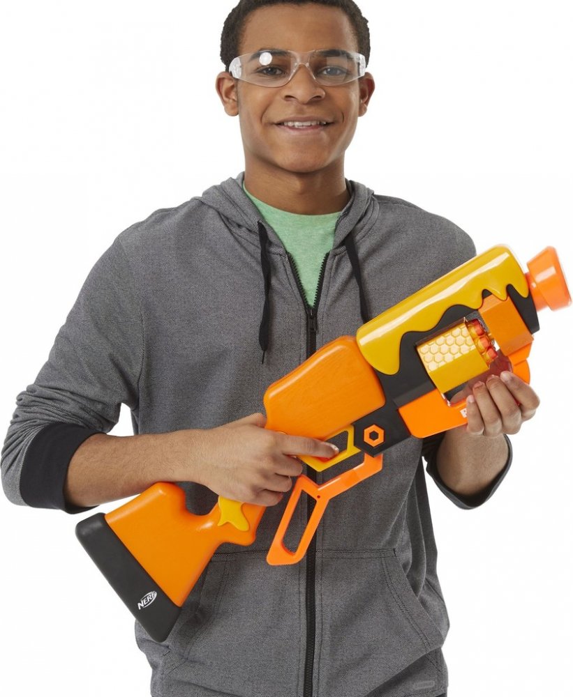 Šipkový blástr Bees je inspirován hrou Roblox Adopt Me! Blástr má pákové nabíjení a otočný buben pro 8 šipek. Nabijte bubnový zásobník, posuňte natahovací pákou tam a zpět a stisknutím spouště vystřelíte šipku na svůj cíl. Obsahuje 8 oficiálních pěnových šipek Nerf Elite, které jsou vyrobeny z pěny, takže se skvěle hodí pro vnitřní i venkovní hru.