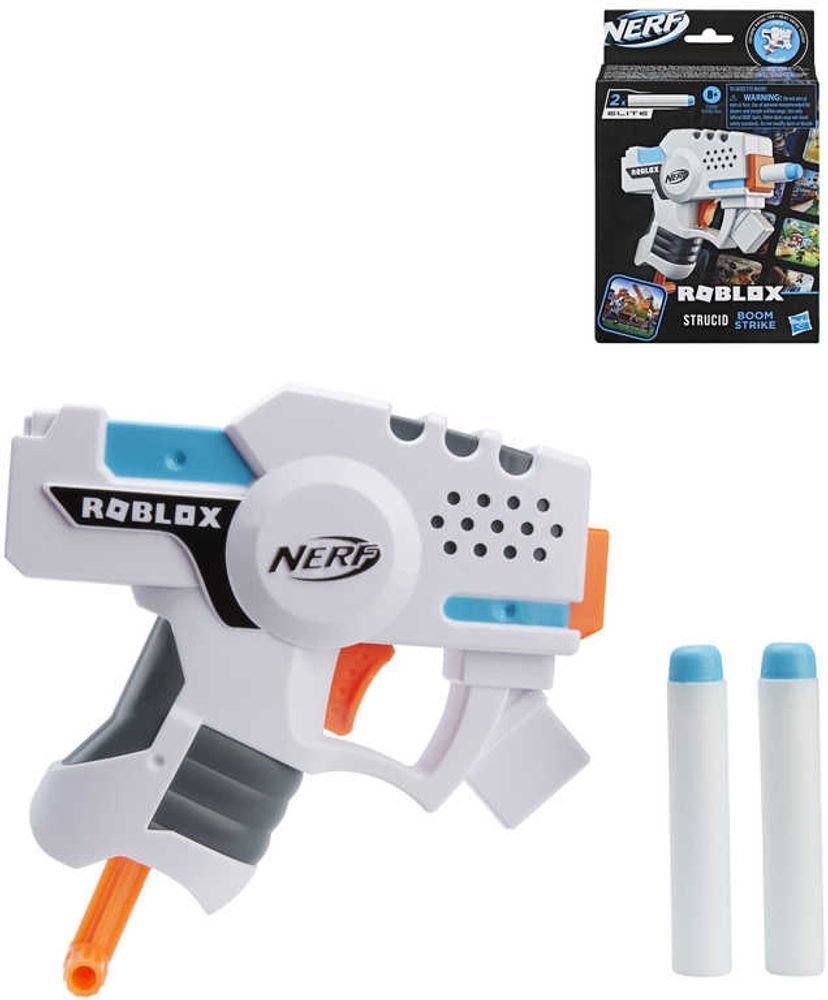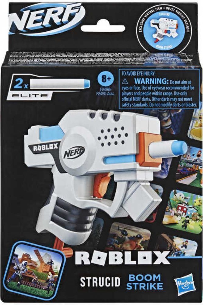 Mini verze oblíbených Nerf blástrů, tentokrát v designu populární videohry Roblox. Každý blástr obsahuje speciální kód, který vám umožní získat virtuální předmět ve videohře Roblox. Tyto šipkové blástry mají kompaktní rozměry, snadno se přenášejí a jednoduše ho skryjete v kapse. Dají se velice rychle a snadno použít. Nabijte šipku, natáhněte a stisknutím spouště vystřelte. Každý blástr obsahuje 2 oficiální pěnové šipky Nerf Elite. Každý blástr se prodává samostatně. Varianty: 1 - zelený Boxy Buster 2 - modrý Plasma Ray 3 - bílý Boom Strike Rozměry balení: cca 21,6 x 14,3 x 4,4 cm Doporučený věk: 8+ Představujeme pistoli Boom Strike, inspirovanou hrou z populární herní platformy Roblox: Strucid. Jedná se o jednokomorový miniblástr, se stlačovací spouští. Dodává se se dvěma pěnovými šipkami Nerf Elite.Pistole Nerf jsou vyrobeny z kvalitního a odolného plastu, který zvládne i hrubší zacházení v průběhu akčních soubojů. Děti ocení nízkou hmotnost pistole, takže s ní mohou dovádět klidně celý den. Navíc jsou šipky vyrobeny z pěny nebo gumového materiálu a jsou naprosto bezpečné.